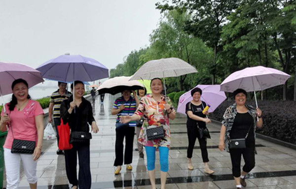 早上9點,160余名麗汽退休職工齊聚麗水“外灘”防洪堤,雖然天空淅淅瀝瀝的下著雨,但阻擋不了大家的腳步。老年朋友撐著傘,一路歡聲笑語,精神抖擻地沿著防洪堤景觀帶走了半個多小時,隨后還參觀了麗水城市文化標(biāo)志性建筑應(yīng)星樓。
