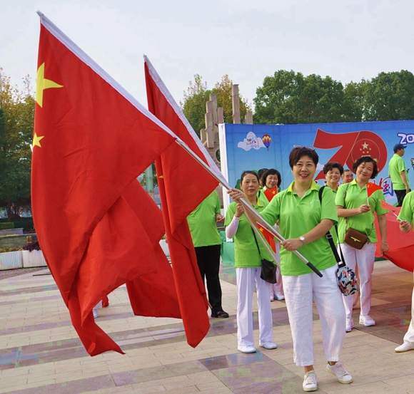 9月29日一早的濱水公園,在8面紅旗和8面麗汽集團(tuán)司旗的簇?fù)硐拢?/span>16名旗手莊重地鋪展開(kāi)一面巨幅國(guó)旗。早早趕來(lái)的麗汽員工和在公園晨練的市民紛紛在國(guó)旗前拍照留念。那一抹鮮艷的中國(guó)紅,映照出的不僅是人們的笑臉,還有所有人心中對(duì)祖國(guó)的依戀。