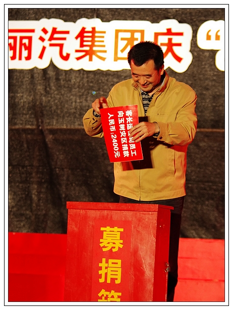 演唱會上,麗汽集團員工為玉樹地震災(zāi)區(qū)進行了捐款,所募集的21981元善款轉(zhuǎn)交市慈善總會。