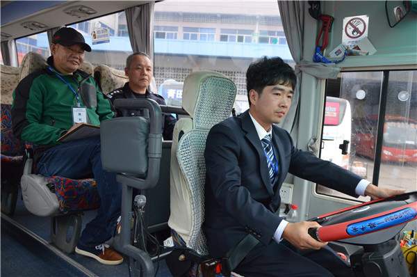 技能比武分安全駕駛常識(shí)比試和駕駛操作技能比武兩部分。安全駕駛常識(shí)比試以電腦當(dāng)場(chǎng)作答方式進(jìn)行,比試題目從理論考試題庫(kù)中隨機(jī)抽取。駕駛操作技能比武模擬迎接旅客上車、發(fā)車前安全承諾、途中安全駕駛和車輛回場(chǎng)送客等幾個(gè)環(huán)節(jié)進(jìn)行。比武邀請(qǐng)市交警支隊(duì)警官、市運(yùn)管局運(yùn)安科領(lǐng)導(dǎo)及麗汽集團(tuán)汽校管理人員擔(dān)任裁判。