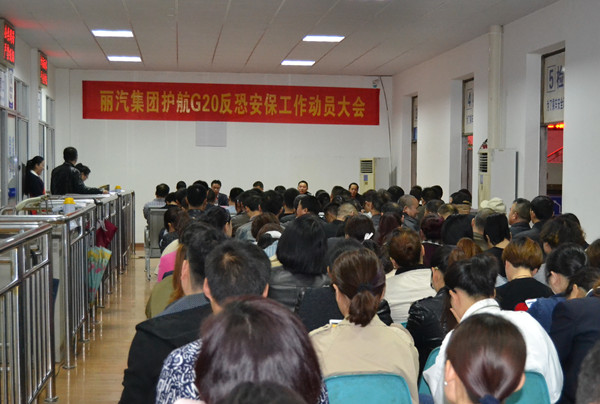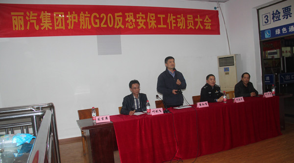 為切實加強集團公司反恐安保防范的各項工作,4月14日晚,麗汽集團護航G20反恐安保工作動員會在客運東站候車室召開。集團公司總經(jīng)理薛和有、反恐支隊長葉亞平、集團公司安全保衛(wèi)稽查部經(jīng)理葉少華出席會議,東站全體人員、各運輸單位領導班子及安全人員共200余人參加大會。會議由集團公司總經(jīng)理助理葉劍飛主持。