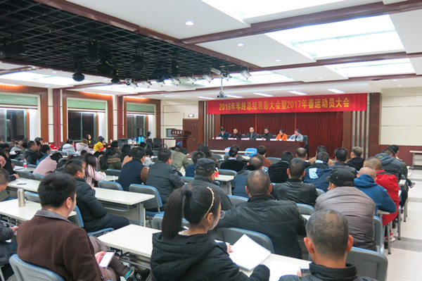 為切實做好2017年春節(jié)運輸工作,貫徹落實集團公司對做好2017年春運工作的指示精神,部署今年的春運工作,旅游集散中心于1月12日晚上召開2017年春運動員大會。集團公司董事長葉茂、總經(jīng)理助理葉劍飛出席會議。旅游集散中心全體干部及職工等100余人參加會議。