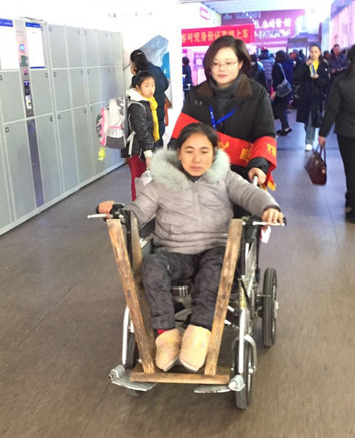 一位雙下肢殘疾的中年女性乘客,坐著輪椅在客運(yùn)東站排隊(duì)買票,這一路的行程原本會(huì)有些許麻煩,但好在有一名熱心工作人員的幫助,她的旅途多了一份輕松和暖意。