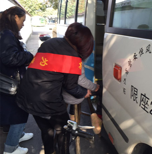 司機(jī)看見了,也過來(lái)搭把手,兩人一起把殘疾乘客子扶上了車。殘疾乘客坐到位置后,楊嬌妹熱心地幫她系好了安全帶。