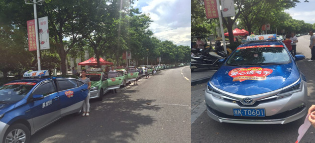 2017年度高考如火如荼,為服務好高考學子,長運公司陽光文明車隊共投入輛15出租車投入愛心送考服務。及時露天的高溫,15位駕駛員也是堅守自己的崗位,與高考學生一同進退,為他們爭取寶貴的時間。