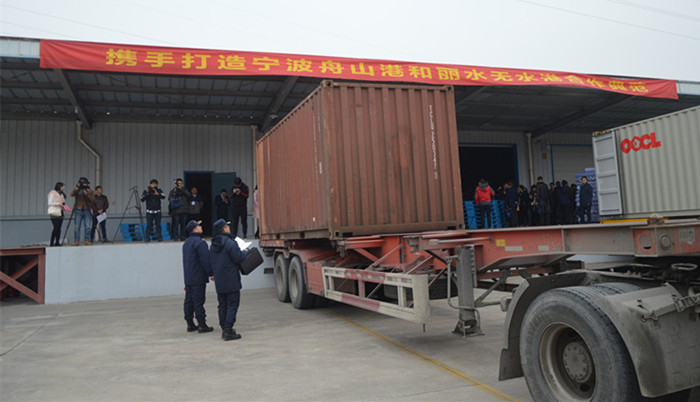 現(xiàn)場(chǎng)發(fā)出了麗水無(wú)水港開港第一箱