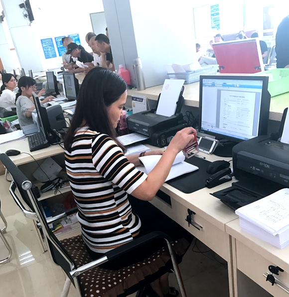 綜合業(yè)務(wù)部是安檢站車輛檢測(cè)流程開始和結(jié)束的關(guān)口部門,部門的9名員工中有8位是女同胞,擔(dān)負(fù)著安檢站所有直接面向客戶的服務(wù)。從檢測(cè)業(yè)務(wù)預(yù)約、受理到檢測(cè)收費(fèi)、檢測(cè)審核出單,甚至新車燃料消耗量核查、檢測(cè)信息的上傳及行駛證合格標(biāo)志的打印,無一不經(jīng)過她們之手。每天上班,她們是第一個(gè)開始工作的崗位,每天下班,她們要堅(jiān)守到最后一筆業(yè)務(wù)完成。雖然來自不同的地方,但緣分讓她們齊聚在安檢站這個(gè)工作舞臺(tái)上,共同演繹了一段段敬業(yè)奉獻(xiàn)的感人故事。
