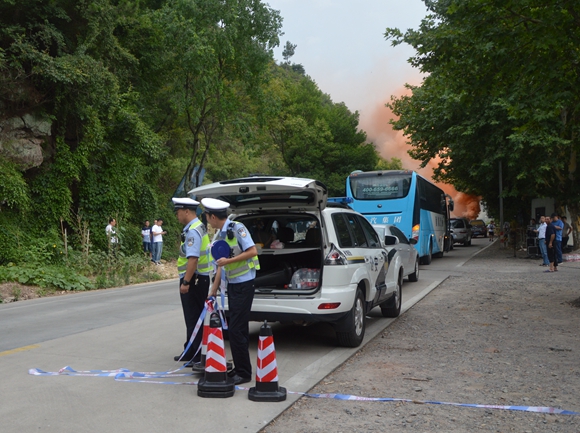 6月29日10時32分,市區(qū)330國道馬蹄凹地段(靈山寺腳8路公交車終點站),一輛危險物品運輸車與小貨車、三輪車相撞,危險品運輸車罐體嚴(yán)重?fù)p壞、現(xiàn)場濃煙滾滾,泄漏的危險物品隨時有燃燒爆炸的可能,連空氣中都彌漫著一股緊張的氣息……