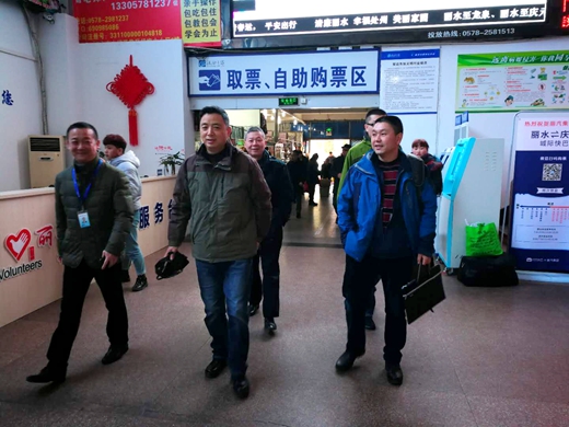 1月17日上午,市交通運輸局副局長葉利東等領(lǐng)導(dǎo)來客運東站督促春運各項措施的落實,檢查春運期間的安全生產(chǎn)等各項準(zhǔn)備工作。長運(東站)經(jīng)理梁巍等陪同檢查。