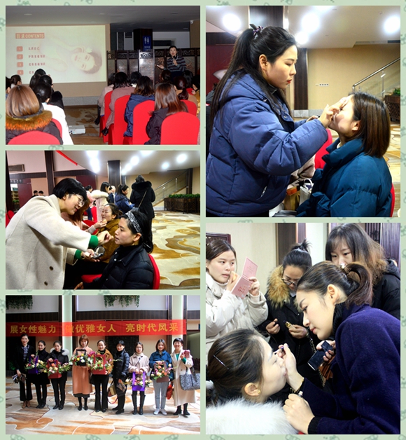在美妝分會場,集團公司的“名模”雷冰帆給大家講解化妝基礎知識,教大家如何認識自己的臉型、皮膚和五官;如何化眼妝、底妝、整妝。實踐操作階段分組選出素顏模特和化妝師,現(xiàn)場進行化妝美妝,經(jīng)過女工們的妙手化妝,化妝后出落成美女。老師進行現(xiàn)場點評,最后大家根據(jù)化妝前后對比,進行投票,選出美妝女王。