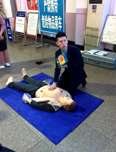 3月21日中午,由麗水市紅十字會提供的壹臺自動體外除顫器正式投放至麗水客運東站,用于東站的應(yīng)急救援工作。麗水市紅十字會的工作人員在東站售票廳進行了儀器設(shè)置并進行現(xiàn)場應(yīng)急救護培訓(xùn)。麗水東站業(yè)務(wù)站、保衛(wèi)科的工作人員以及周邊商戶參加了培訓(xùn)。