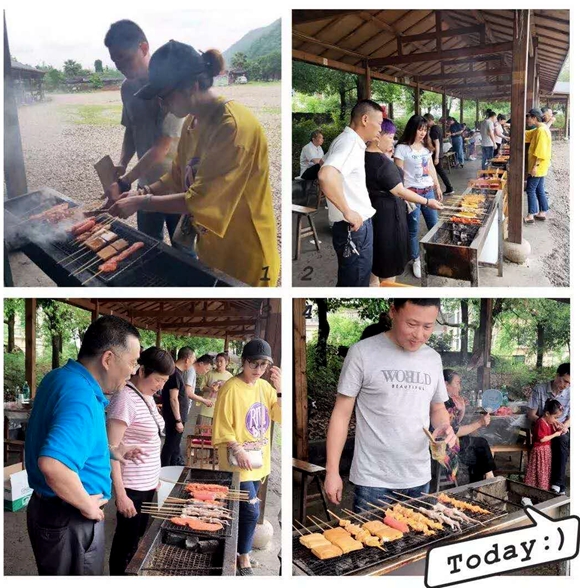 活動(dòng)現(xiàn)場(chǎng),大家自己動(dòng)手燒烤,包餃子,隨著一陣陣孜然的香氣,餃子肉香的散開,讓人胃口大開,大家有說有笑,其樂融融。果然,好天氣,好景就是要跟美食才能相配!