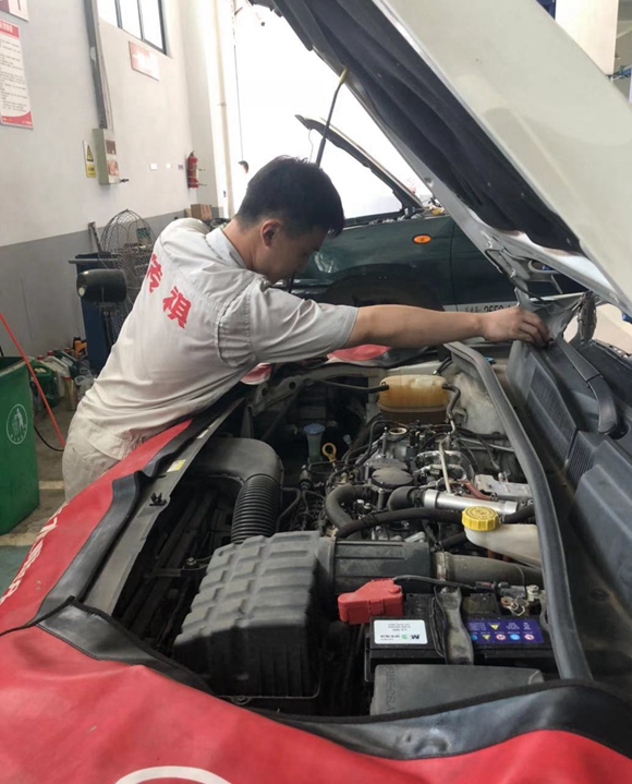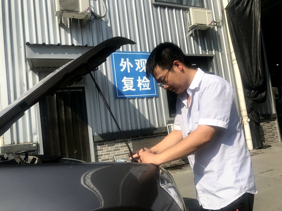 【機修工】車間內沒有空調,只能用風扇緩解這車間內的悶熱,只要在車間內走過,都會覺得悶熱無比。機電師傅們克服高溫,打開溫度高達五六十度的機艙,徒手伸進機艙擰開螺絲,動作嫻熟,絲毫沒有受到高溫天氣的影響,很快工具箱上放了很多拆下來的零件,邊拆邊說:汽車電路問題一直是個很頭疼、麻煩的事,尤其是“頑癥”,要經過不斷的學習、研究、拆裝,才能確診故障問題迎刃而解。