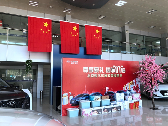 國(guó)慶將至,為了迎接新中國(guó)70華誕,營(yíng)造良好的節(jié)日氛圍,伊翔公司對(duì)展廳內(nèi)部和外部進(jìn)行了重新布置,展廳內(nèi)部懸掛了大大小小的國(guó)旗,外部懸掛了橫幅,伊翔公司以嶄新的面貌,用更好的服務(wù)來(lái)面對(duì)廣大客戶。
