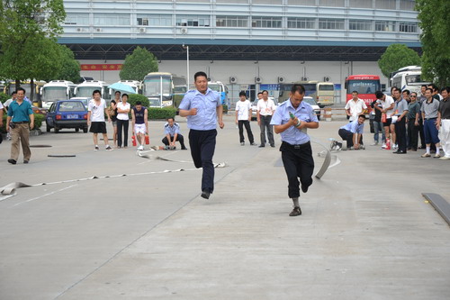 各分公司、子公司的11支義務(wù)消防隊(duì)參加了消防接力比賽。經(jīng)過(guò)角逐,集團(tuán)本部、伊翔公司、客運(yùn)東站分獲比賽前三名。