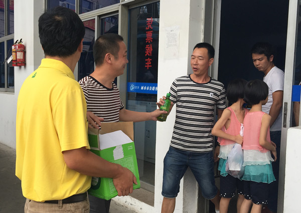 梁巍經(jīng)理為即將發(fā)車的駕駛員送去清涼。