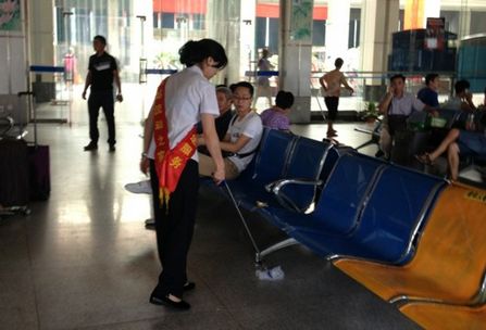 踏進(jìn)站前廣場,你會看見保潔員拿著掃把、簸箕不停的巡視,及時的清理;買票時,你會時不時看見保衛(wèi)稽查人員拿著長柄鑷子在清理;候車時,推著服務(wù)車的西站服務(wù)班工作人員在為旅客提供服務(wù)的同時也拿著長柄鑷子清理地上的垃圾;上車時,你還會在發(fā)車區(qū)看見檢票員跟調(diào)度員在發(fā)車間隙拿著長柄鑷子及時清理正在上車的旅客丟下的垃圾。不遠(yuǎn)處的場地上,是拿著鑷子和垃圾袋的值班站長的身影。