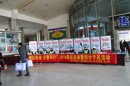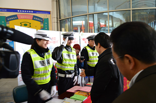 今天上午,2014年春運(yùn)工作正式啟動(dòng),市交警支隊(duì)、高速交警支隊(duì)、市運(yùn)管局、麗汽集團(tuán)等單位在客運(yùn)西站為旅客提供服務(wù)。正在西站檢查春運(yùn)工作的副市長葛學(xué)斌專門前來慰問了現(xiàn)場工作人員,與大家一一握手。