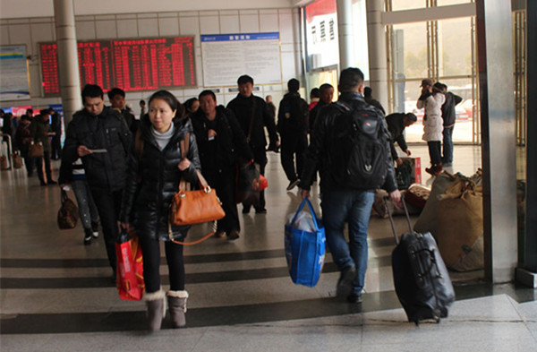 服務(wù)班的陳燕早早的推著服務(wù)車在候車室服務(wù),為春運(yùn)第一天踏上回家旅途的人們免費(fèi)送上一杯杯熱氣騰騰的開水。陳燕說,為旅客服務(wù)是她的本職工作,農(nóng)民工兄弟們?cè)谕夤ぷ髁艘荒瓴呕匾惶思?,她和姐妹們要盡自己所能,為他們提供最優(yōu)質(zhì)的服務(wù)。服務(wù)班已備好了生姜茶,隨著氣溫的下降,姐妹們將會(huì)推車送姜茶服務(wù),為他們回家的途中送上一抹溫暖。