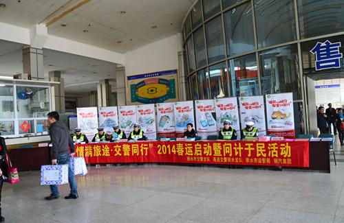 活動(dòng)現(xiàn)場設(shè)立了咨詢臺,交警部門通過發(fā)放《駕駛?cè)舜哼\(yùn)安全手冊》、《兒童交通知識畫冊》、《駕駛?cè)伺嘤?xùn)教程》等交通安全書籍和宣傳畫冊,向廣大旅客們進(jìn)行春運(yùn)交通安全宣傳。此外,還向旅客們派送印有道路安全溫馨提示的年歷、新春福字,為旅客送上新年的祝福和平安。