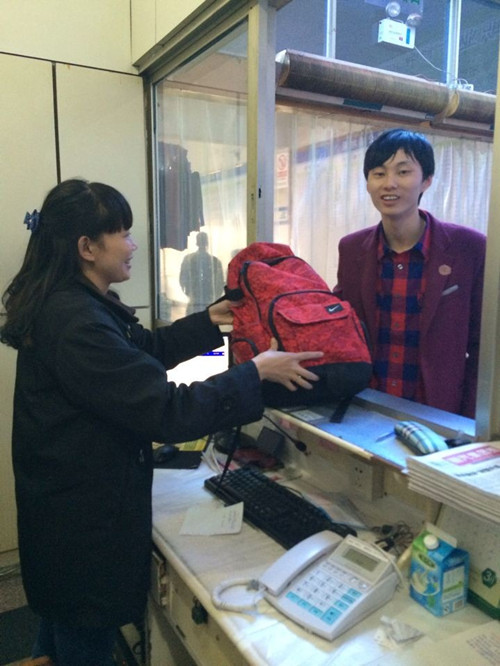 “您好,這里是客運東站服務(wù)處,您落在車上的背包我們已經(jīng)幫您找到了,請您有空的時候過來取?!狈?wù) 組組員李一斌平靜中帶點興奮地說。