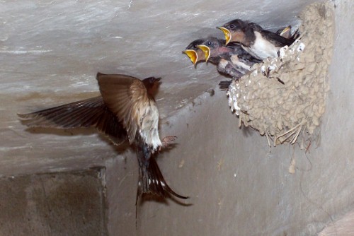 小時候我總喜歡觀察燕子。有時,我饒有興致地仰著頭,看它們喂養(yǎng)孩子。只要大燕子一出現(xiàn),它們的孩子全部從巢里齊刷刷地仰起腦袋,露出黃色小嘴巴,嗷嗷叫嚷。有時無聊,我趴在外婆家閣樓的稻草堆上,看屋檐外的一群燕子停在閣樓的邊沿,當(dāng)有一只燕子飛近時,燕子們都拍翅,叫喚著相迎。我看懂了它們的語言,它們在進行友好的表示。是同類,盡管陌生,它們卻能友好相處,沒有排斥,沒有人類社會的互相傾軋。我想燕子與人類的相處是動物和人類和諧相處的典范,人類接受了燕子并把燕子當(dāng)作吉祥物供養(yǎng),這是幾千年來一直延續(xù)下來的。就連北京舉辦奧運會,五個福娃中也有一只展翅飛翔的燕子“妮妮”,其造型創(chuàng)意來自北京傳統(tǒng)的沙燕風(fēng)箏,寓意著妮妮把春天和喜悅帶給人們。