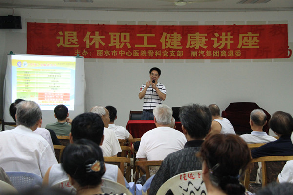 為傳播心腦血管、高血壓、中風(fēng)等防治知識(shí),提高中老年人的生活質(zhì)量,7月21日,麗汽集團(tuán)離退委黨總支與麗水市中心醫(yī)院骨科黨支部聯(lián)合在麗汽離退休活動(dòng)中心舉辦“退休職工健康講座”。