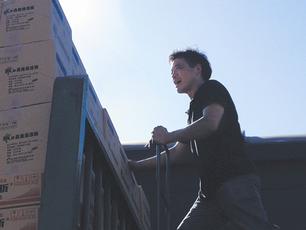 7月29日14:05,南明物流貨運(yùn)駕駛員高麗平在烈日下忙碌地裝卸貨物