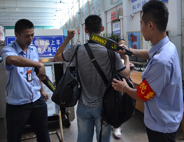 21日,隨著東站干部員工自救和兄弟單位的及時(shí)援助,東站的所有班線恢復(fù)了正常通車。生產(chǎn)正常了,安全也不能放松。東站經(jīng)理室緊急布署了安檢工作,要求危檢崗位工作人員要進(jìn)一步提高責(zé)任意識(shí)和大局意識(shí),在洪災(zāi)過后和“青奧會(huì)”期間的雙重安全形勢和任務(wù)下,及時(shí)引導(dǎo)旅客,利用手持危檢棒認(rèn)真查堵危險(xiǎn)品,把安全隱患消除在萌芽狀態(tài),為旅客筑起一道牢固的安全防線。