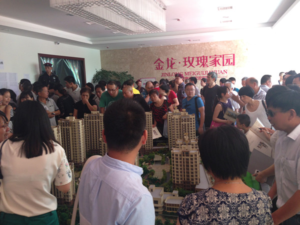 9月6日下午15時(shí),房產(chǎn)公司舉行了金龍?玫瑰家園開盤儀式,并推出了400多套房源,戶型有60、70、90、130平方米等不同面積。面對(duì)起價(jià)9900元/平米、均價(jià)12980元/平米、一次性付款還可享93折優(yōu)惠的價(jià)格,開盤后,售樓部展廳內(nèi)是人頭攢動(dòng),門廳外也排起了長(zhǎng)龍。開盤三天,60~90平方米戶型便已基本售罄,130平方米優(yōu)質(zhì)戶型也所剩不多。