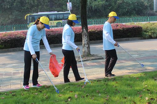 儀式結(jié)束后,大家立刻進行了分組行動,清撿地面垃圾和煙頭,對不文明行為及時進行勸阻。