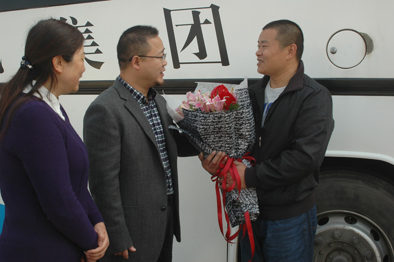 章雙林師傅接過鮮花,很靦腆的笑著說:“這沒什么,也是我的責(zé)任。”