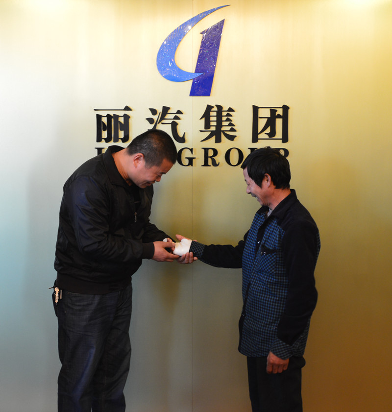 受傷乘客今天專程到麗汽集團感謝章雙林
