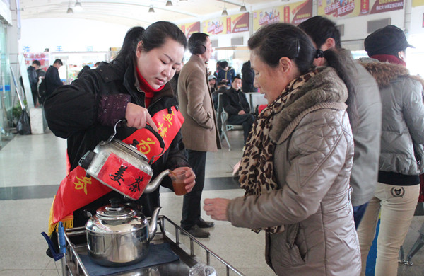 2月6日一大早,客運西站“流動之家”服務(wù)班的姐們早早就準(zhǔn)備好一大壺?zé)狎v騰的姜茶,免費送到候車的旅客手上,希望熱騰騰的姜茶能驅(qū)散早晚的寒意,讓旅客回家的旅程變的更加溫暖。