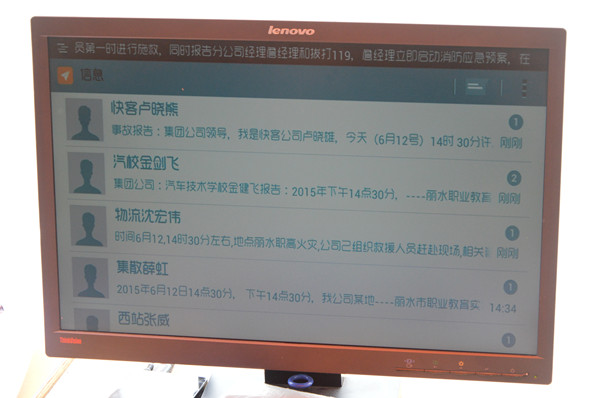 各單位聯(lián)系人短信報告事故情況