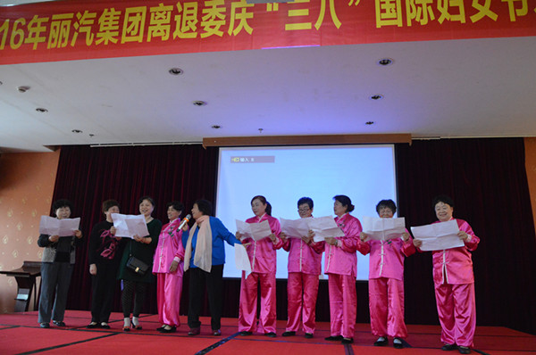 為慶祝第106個(gè)國際婦女節(jié),展示離退休女職工的風(fēng)采,今天上午,麗汽集團(tuán)離退委在八一賓館舉行慶“三八”國際婦女節(jié)才藝展示活動(dòng),260余名離退休女職工表演了扇子舞、排舞、詩朗誦、太極表演、獨(dú)唱、合唱、腰鼓、三句半等節(jié)目,既展示了離退休職工的精神風(fēng)貌,也展示了他們豐富多彩的退休生活。全體人員起立合唱的一曲《革命人永遠(yuǎn)是年輕》將活動(dòng)推向了高潮。