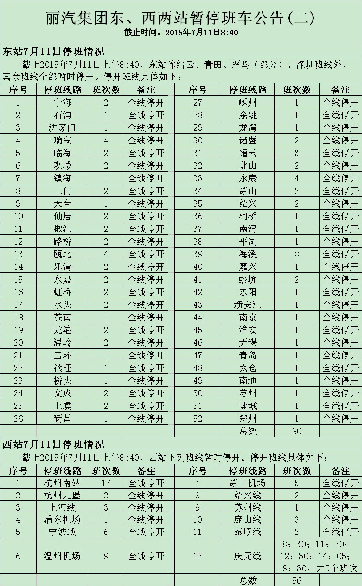 麗汽集團東、西兩站暫停班車公告(三)