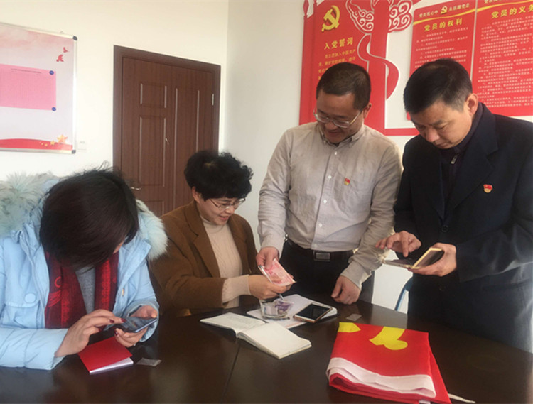在主題黨日活動的現(xiàn)場,還進(jìn)行了繳納黨費(fèi)的儀式。
