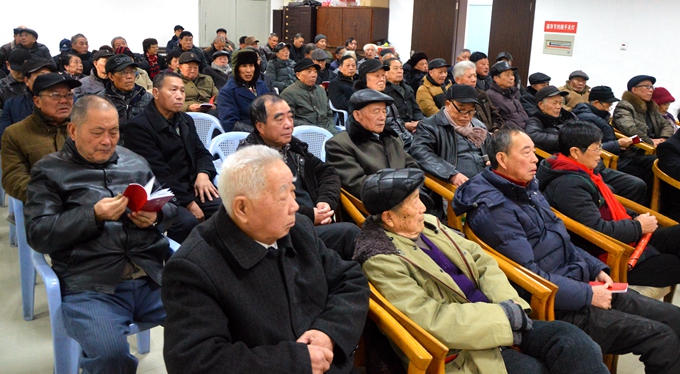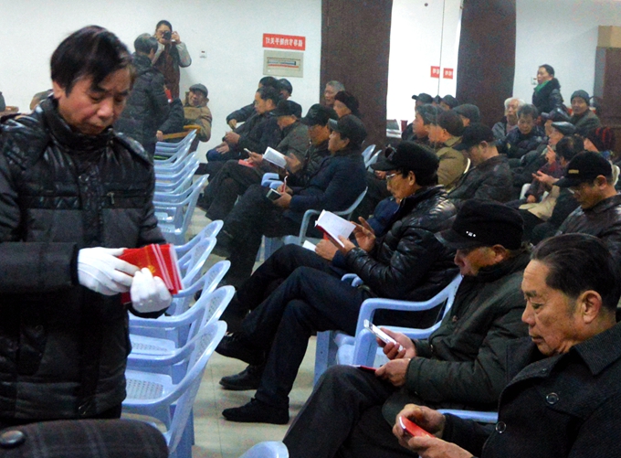 宣貫會前,工作人員還向參會的黨員同志發(fā)放了新版《黨章》,老同志們迫不及待地認(rèn)真翻閱了新《黨章》。