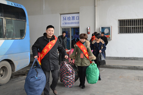 21日,隨著春節(jié)的日益臨近東、西站客流量明顯增多,兩站“春運(yùn)志愿者服務(wù)隊(duì)”今天正式拉開了服務(wù)序幕。上午9:00一個(gè)個(gè)志愿者服務(wù)隊(duì)員們身披彩帶,他們有的給旅客送熱姜茶、有的幫助旅客自助購(gòu)票,有的引導(dǎo)旅客安檢,有的在售票廳維持秩序,有的穿梭于候車旅客中間服務(wù),“我來(lái)幫您提行李”,“大爺我攙扶您上車”,“出門要看管好行李”,一句句貼心的溫馨提示讓旅客們感到溫暖,一次次主動(dòng)幫助給旅客們留下美好記憶,志愿服務(wù)給回家過(guò)年的旅客們鋪就了方便、安全、和諧的旅途。
