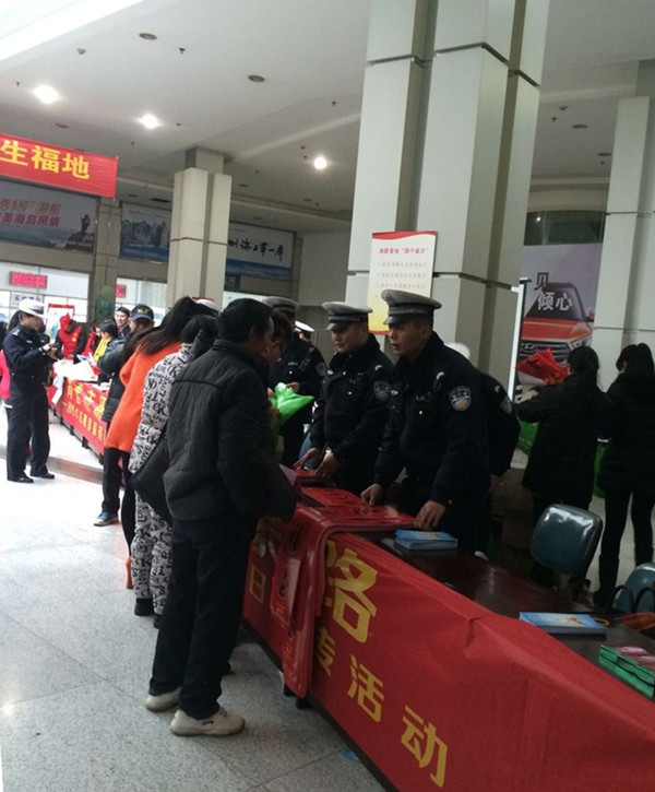 本次活動由麗水市公安局交警支隊、麗水市公路管理局、金麗溫高速、高速交警麗水支隊、麗水市道路運輸管理局、麗汽集團等單位參加,并在西站現(xiàn)場設(shè)立了春運服務(wù)點?;顒蝇F(xiàn)場熱鬧異常,咨詢的旅客也絡(luò)繹不絕,活動單位向廣大旅客們發(fā)放了《珍愛生命、安全出行、拒絕黑車》、《文明交通安全宣傳手冊》等交通安全書籍和宣傳冊頁,還為旅客們送上了年味十足的福字、對聯(lián)和使用性強的浙江省高速公路行車指南地圖作為新年小禮物,受到了廣大旅客的歡迎。