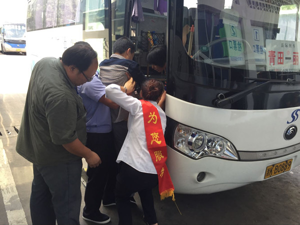 坐“輪椅”的旅客是青田人,因患嚴重中風妻子陪同到麗水就醫(yī),看完病后乘三輪車到汽車東站準備回青田。因無法獨自行走正和手提大包、小包行李的妻子在汽車東站門口發(fā)愁。恰好被巡查場地的副經(jīng)理戴宏星和保衛(wèi)科的熊宣標看見了,他們趕緊上前,一左一右攙扶起旅客,可是旅客根本不能行走,他倆使勁全力幾乎是半抬的把旅客扶到服務臺。從售票廳到檢票口短短的五十米路,足足用了十來分鐘。