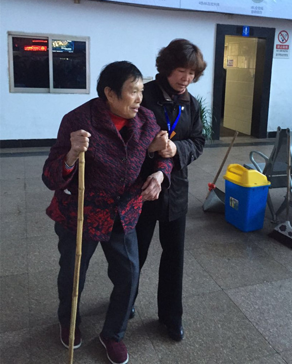 通過聊天了解到,老奶奶不是麗水人,因為腿腳有毛病,今天上午剛出院,下午準(zhǔn)備坐車去衢州。在蔡姐姐的幫助下,幫老奶奶買了13:35到衢州的車票,并安排老奶奶在服務(wù)臺休息。不一會兒,老奶奶起身想上廁所,由于廁所在二樓,老奶奶腿腳不便,蔡姐姐見狀又立刻上去扶著老奶奶上廁所。檢票上車時,她又一直扶著老奶奶檢票并上車,老奶奶拉著蔡姐姐的手激動得說:“同志,謝謝你,你看我也沒什么文化,好話也說不來,總之是太感謝你了,你真的是比我親生女兒還要好,謝謝你,謝謝……”“沒事,真的沒事,應(yīng)該的,應(yīng)該的?!卑差D好老奶奶后,蔡姐姐還是不放心,特意交代了駕駛員,老奶奶腿腳不方便,沿途和到站后照顧一下。