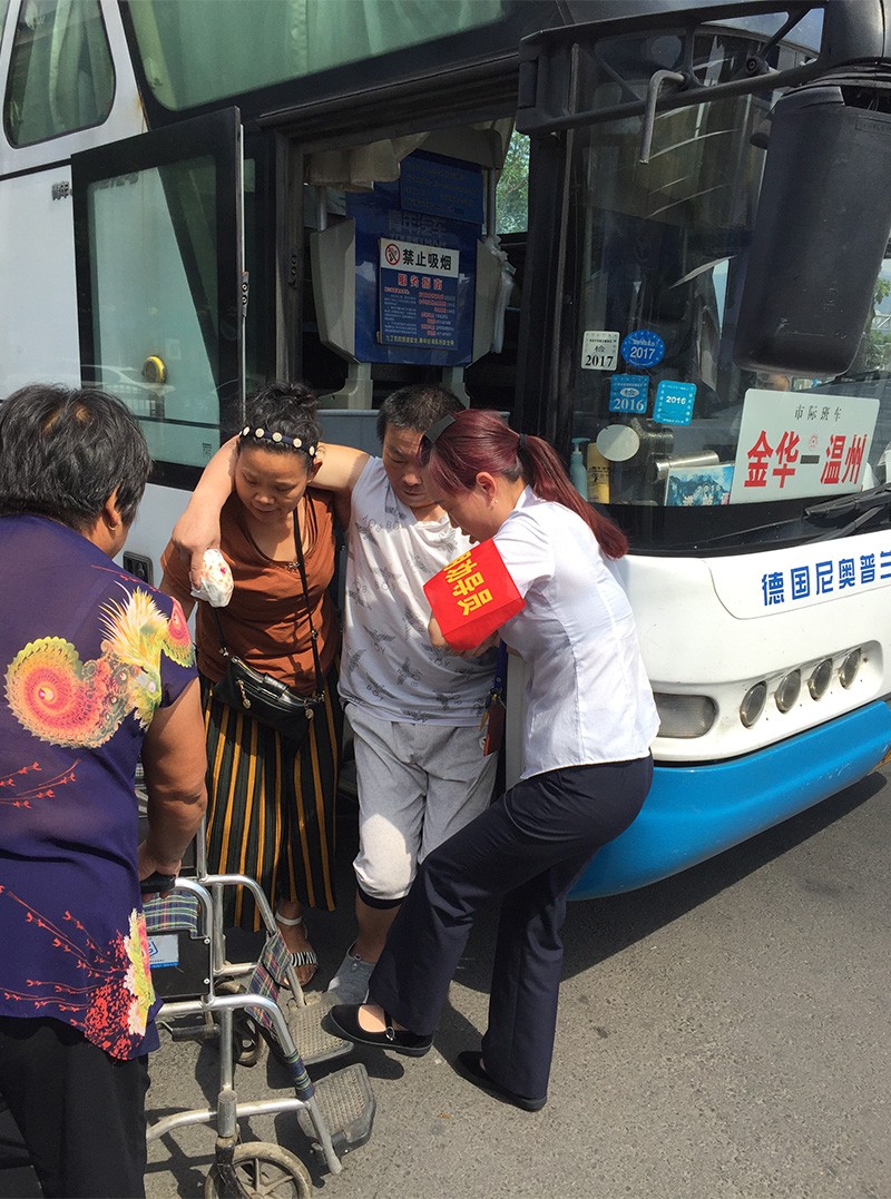 攙扶行動不便的乘客上車