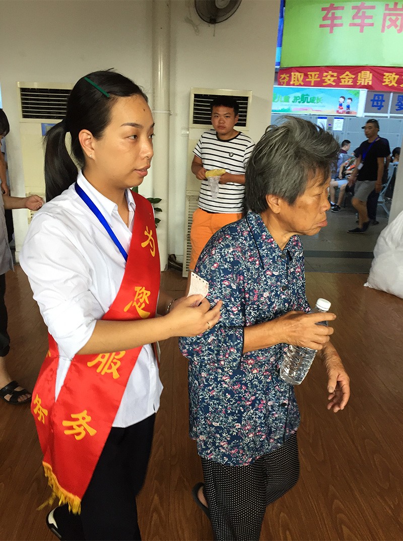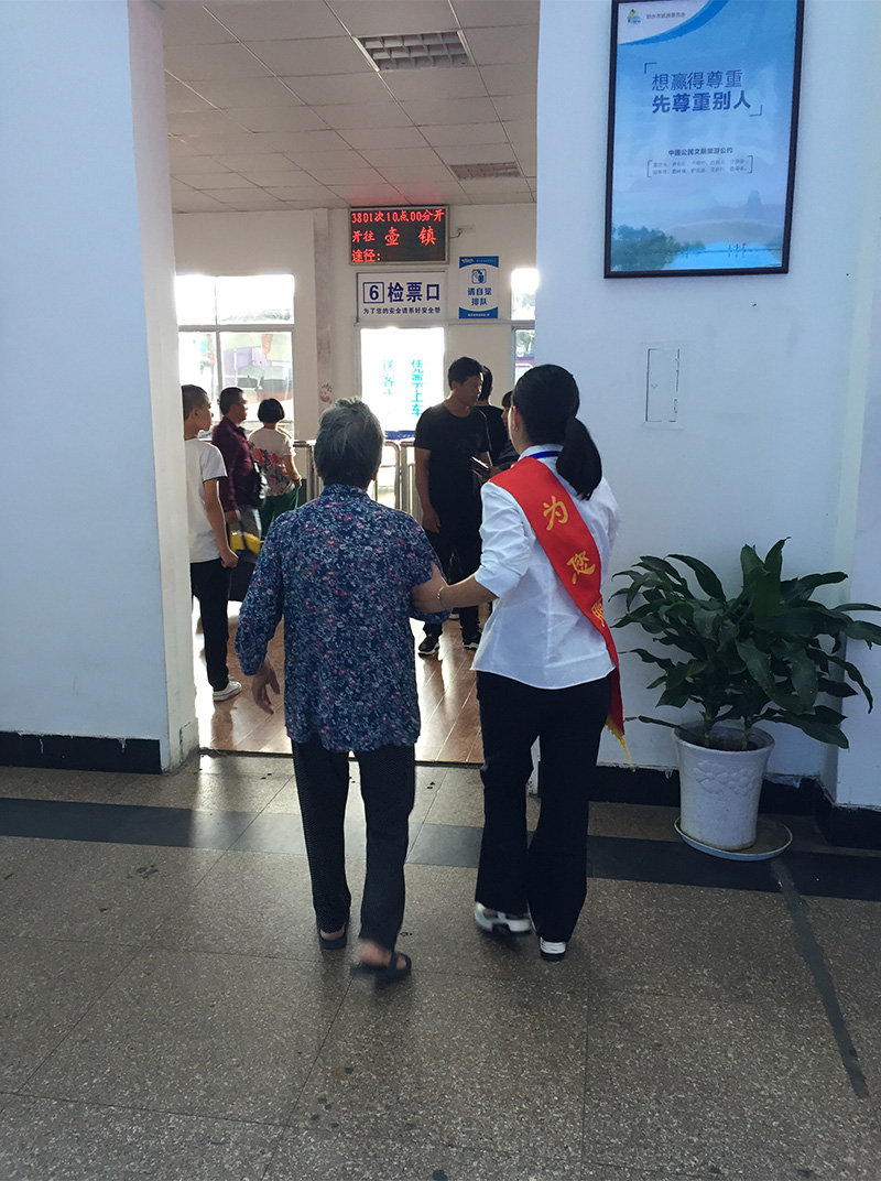 幫助有困難旅客送她上車